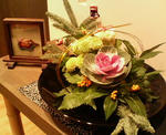 クリスマスまで持ちそうな花材料を選んだつもりなのですが、枯れてしまったら別の花材を入れてみてください。きっとそれぞれの色に染まる新たな作品に生まれ変わる事でしょう。2度も3度も楽しんでくださいね。